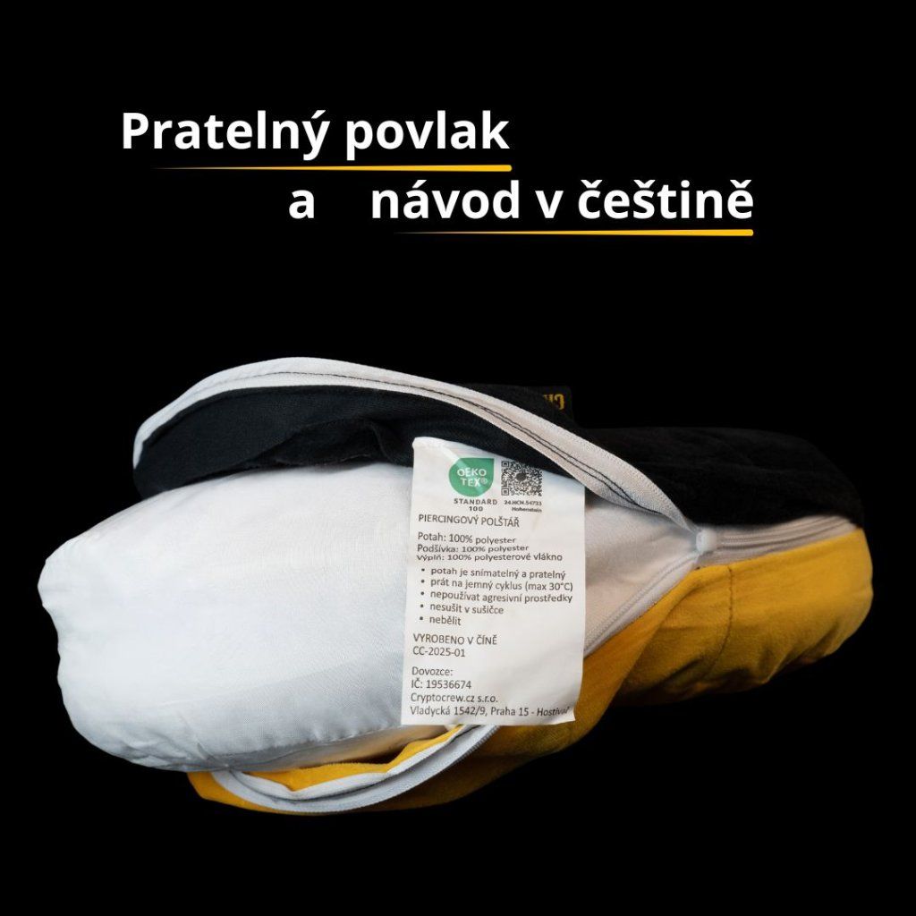 Díky tomu je vhodný nejen pro čerstvé piercingy, ale i pro zahojené šperky, které bývají citlivé při delším ležení na jedné straně. Tento typ polštáře doporučujeme klientům i v našem piercingovém studiu CryptoCrew jako praktickou pomůcku pro pohodlnější spaní během hojení.