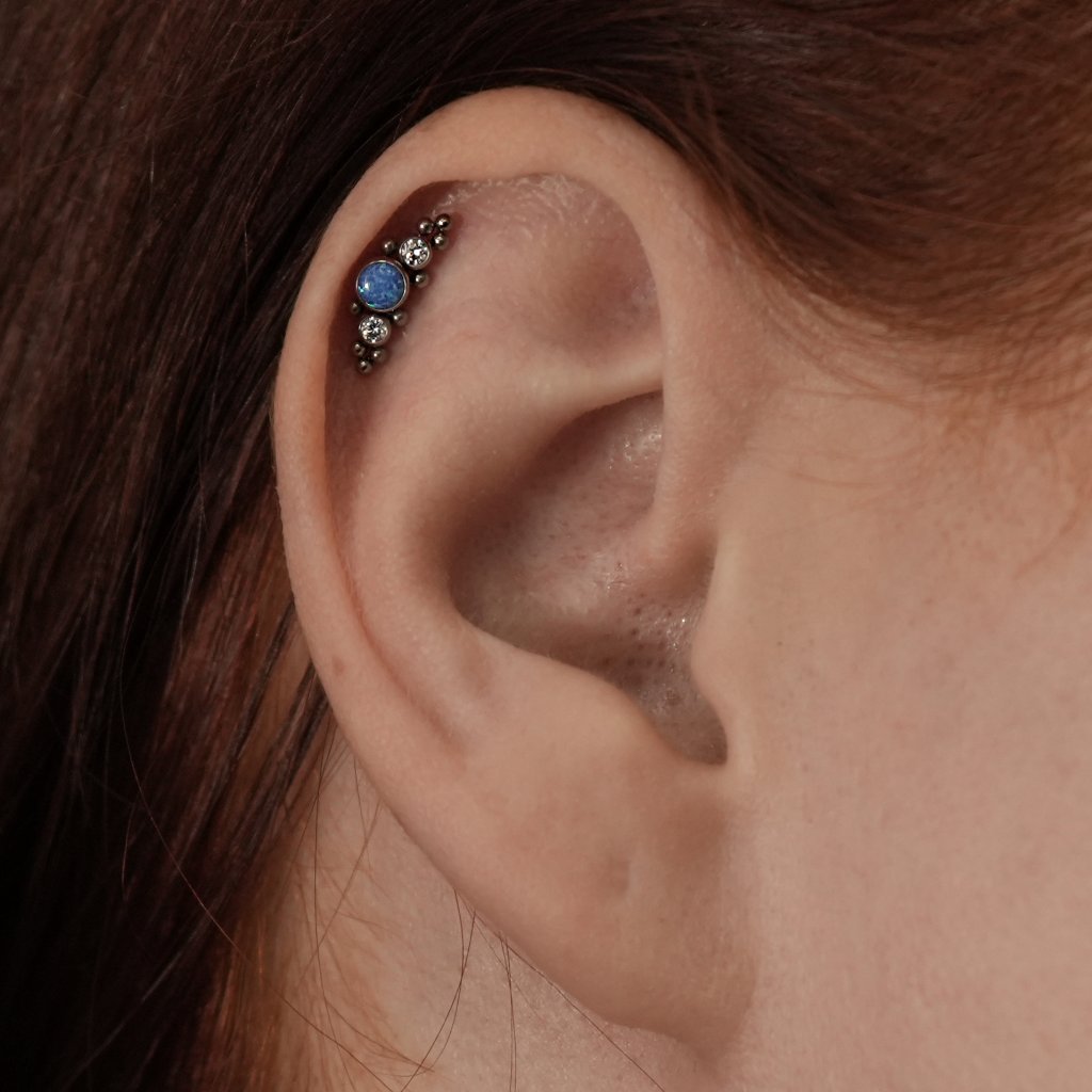 Kvůli tvaru Blue Crown tento šperk nedoporučujeme jako aplikační šperk. Může komplikovat dobu hojení a zachytávat se o oblečení. Tato informace se týká pouze čerstvě aplikovaného šperku.
