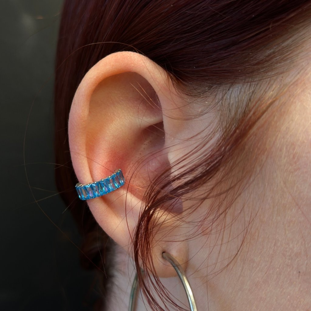 Titanový kroužek Azure Grand zaujme masivní řadou modrých zirkonů, které se po celém obvodu skládají do efektu broušených krystalů. Díky intenzivně modrému odstínu působí velmi luxusně a okamžitě přitáhne pozornost. Je skvělou volbou pro ty, kteří chtějí výrazný, ale elegantní šperk. Kroužek je vhodný také jako dětská náušnice (ve velikosti 8 mm).