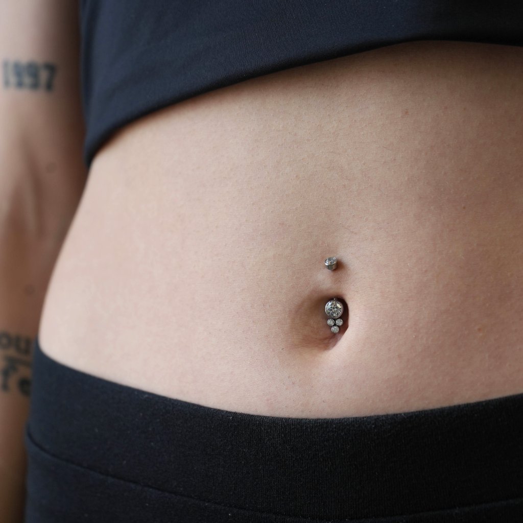 Upozorňujeme, že kvůli svému tvaru Trinity Glow není vhodný jako aplikační piercing do pupíku. U čerstvě provedeného navel piercingu by mohl komplikovat hojení nebo se zachytávat o oblečení.